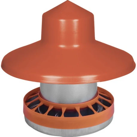 Tour d’alimentation galvanisée d’aspect robuste, adaptée aux volailles.